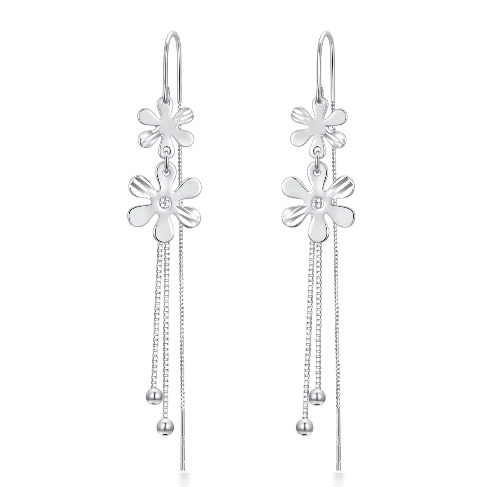 ✨ 925 Sterling Silver Threader Earrings with Petal Tassel